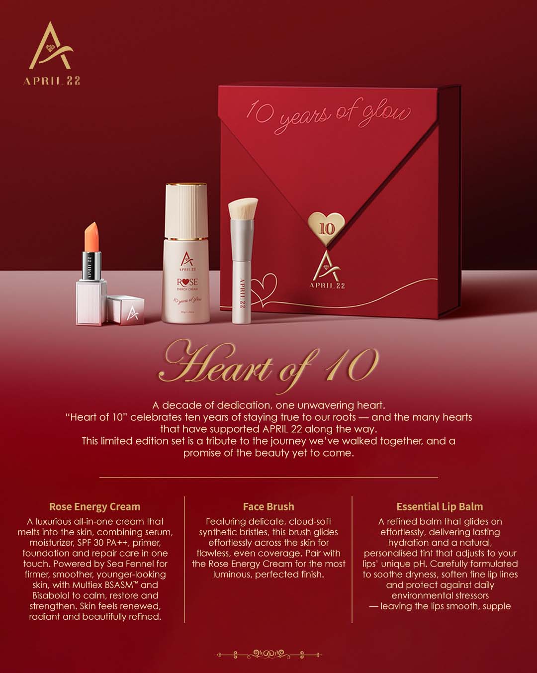 “Heart of 10” celebrates ten years of staying true to our roots — and the many hearts that have supported APRIL 22 along the way.